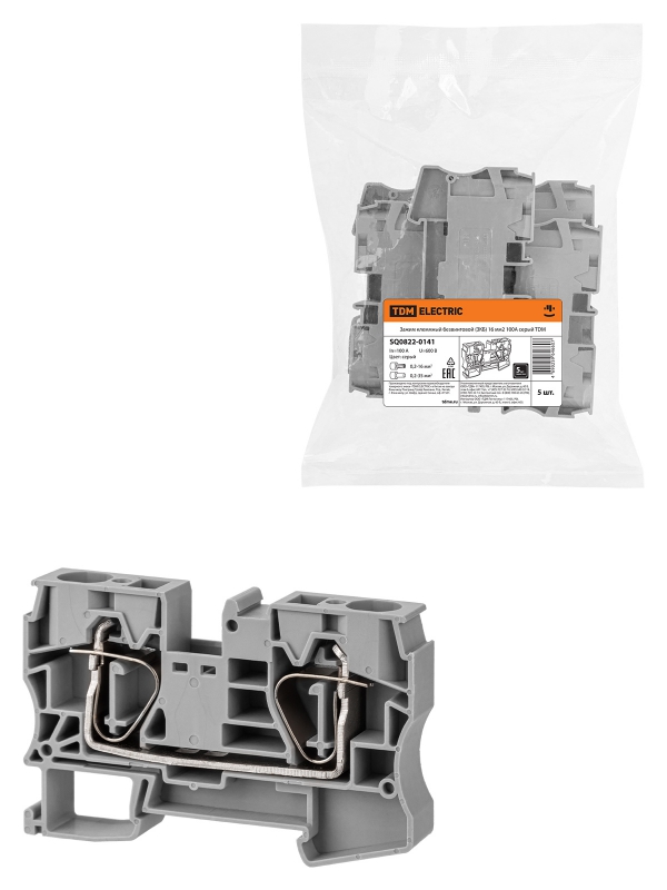 Зажим клеммный безвинтовой (ЗКБ) 16мм2 100А серый TDM | код SQ0822-0141 | TDM