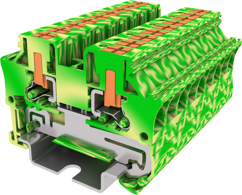 TPV4-2-PE Клемма TP 1-1 проходная боковой ввод, с заземл., Push-in, сеч.4мм2, желт-зел., шт | код TPV4-2-PE | SUPU
