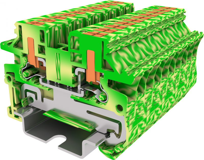 TPV2.5-2-PE Клемма TP 1-1 проходная боковой ввод, с заземл., Push-in, сеч.2.5мм2, желт-зел., шт | код TPV2.5-2-PE | SUPU