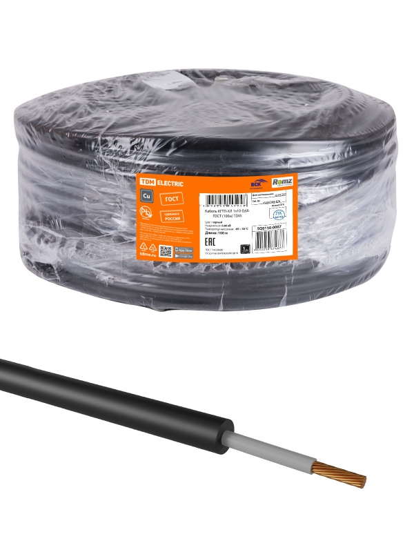 Кабель КГТП-ХЛ 1х16-0,66 ГОСТ (на катушке 80м) TDM | код SQ0110-0208 | РЭМЗ ТМ