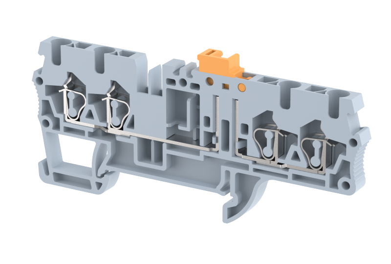 Клемма проходная пружинная 2,5 мм2 с размыкателем на 4 подключения, серая SQK2.5-2X2-GREY | код 2102150000 | Elmex