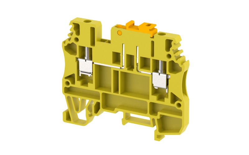 Клемма проходная винтовая 2,5 мм2 с размыкателем, с тестовым гнездом, на 2 подключения, желтая DUTKD2.5TS-YELLOW | код 1702160004 | Elmex