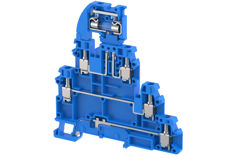 Клемма проходная винтовая 4 мм2, двухуровневая, под предохранитель, на 4 подключения, синяя TQF4-2T-BLUE | код 1203270001 | Elmex