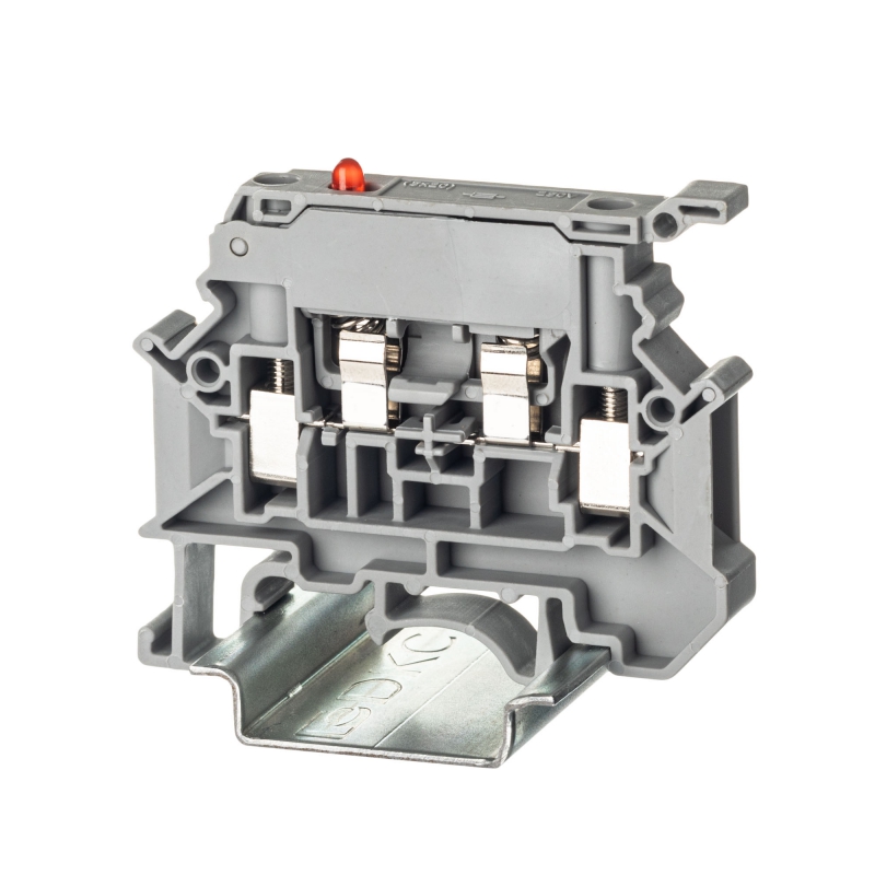 Клемма для предохранителя, винтовой зажим, 2 точки подключения, индикация 250В, 4 кв.мм, серая | код TUR-4-HESILED250 | DKC
