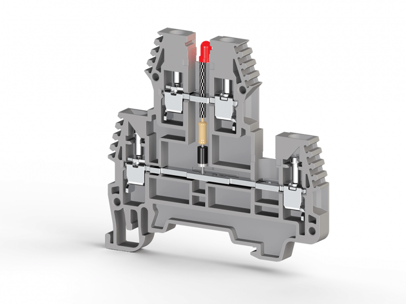 309 249, Клеммник 2-х ярусный, 2,5 мм.кв., с индикацией 48 VAC, (серый), PIK2,5 NLD 48VAC/NM Серия V0 | код 0.0.0.3.09249 | KLEMSAN