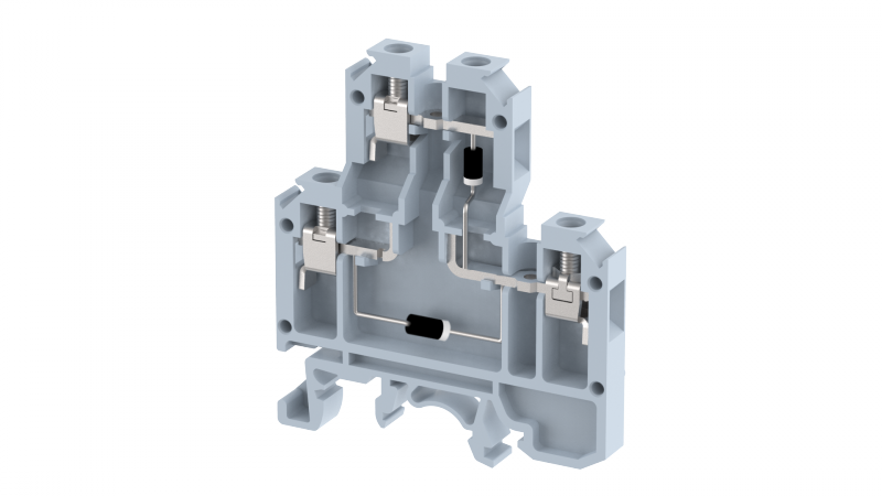 Клемма проходная винтовая с электронными компонентами 2,5 мм2, двухуровневая, 2 диода 1N 4007 с общим катодом, на 3 подключения, черная KUDD4CC2_MT530(BK) | код 1102520325 | Elmex