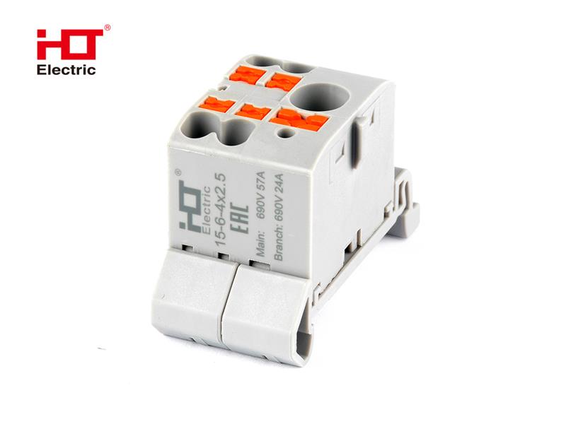 Распределительный Блок ПНК-15 вводной провод 6 мм2 /отходящие провода 4x2.5мм2 крепление F-NS35 HLT | код 081-27-013 | HLT