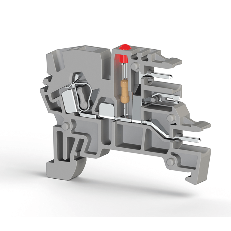 364 070, Клеммник пружинный с 2-х ряд. разъёмом, с индикацией 24 VAC, на DIN-рейку, 2,5 мм.кв., (серый), PCY 2,5EL | код 0.0.0.3.64070 | KLEMSAN