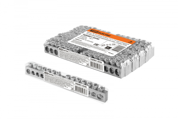 Шина N нулевая 6х9мм 14/1 (14 групп/крепеж по центру) никелированная инд. стикер TDM | код SQ0801-0340 | TDM