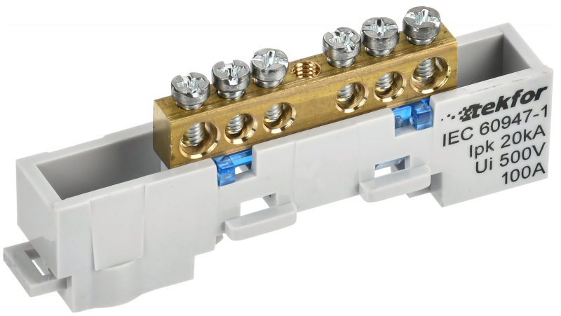 TEKFOR Шина N ноль неизолированная на универсальном держателе 6х9-6-С IEK | код TF-NN10-06-DL-K07 | IEK