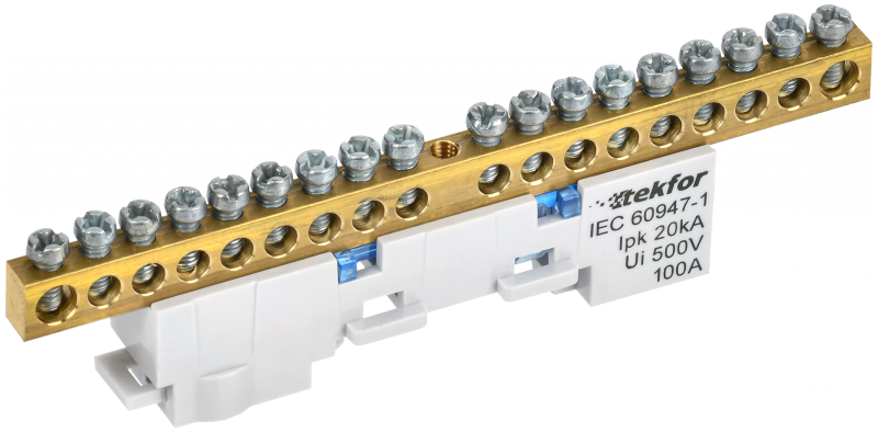 TEKFOR Шина N ноль неизолированная на универсальном держателе 6х9-18-С IEK | код TF-NN10-18-DL-K07 | IEK