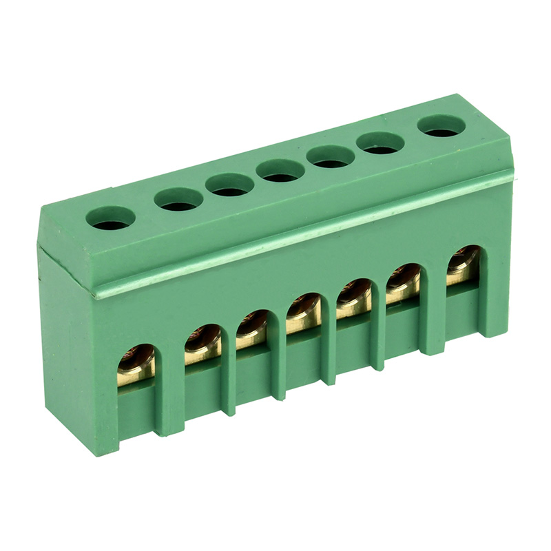 Шина PE земля в корпусном зеленом изоляторе на DIN-рейку 6x9 мм 7 групп REXANT | код 11-2321 | REXANT