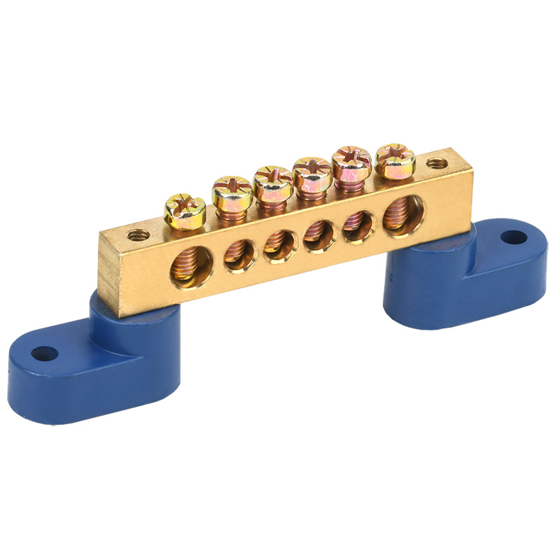 Шина N нулевая 8х12 мм на двух угловых синих изоляторах 6 групп REXANT | код 11-2332 | REXANT