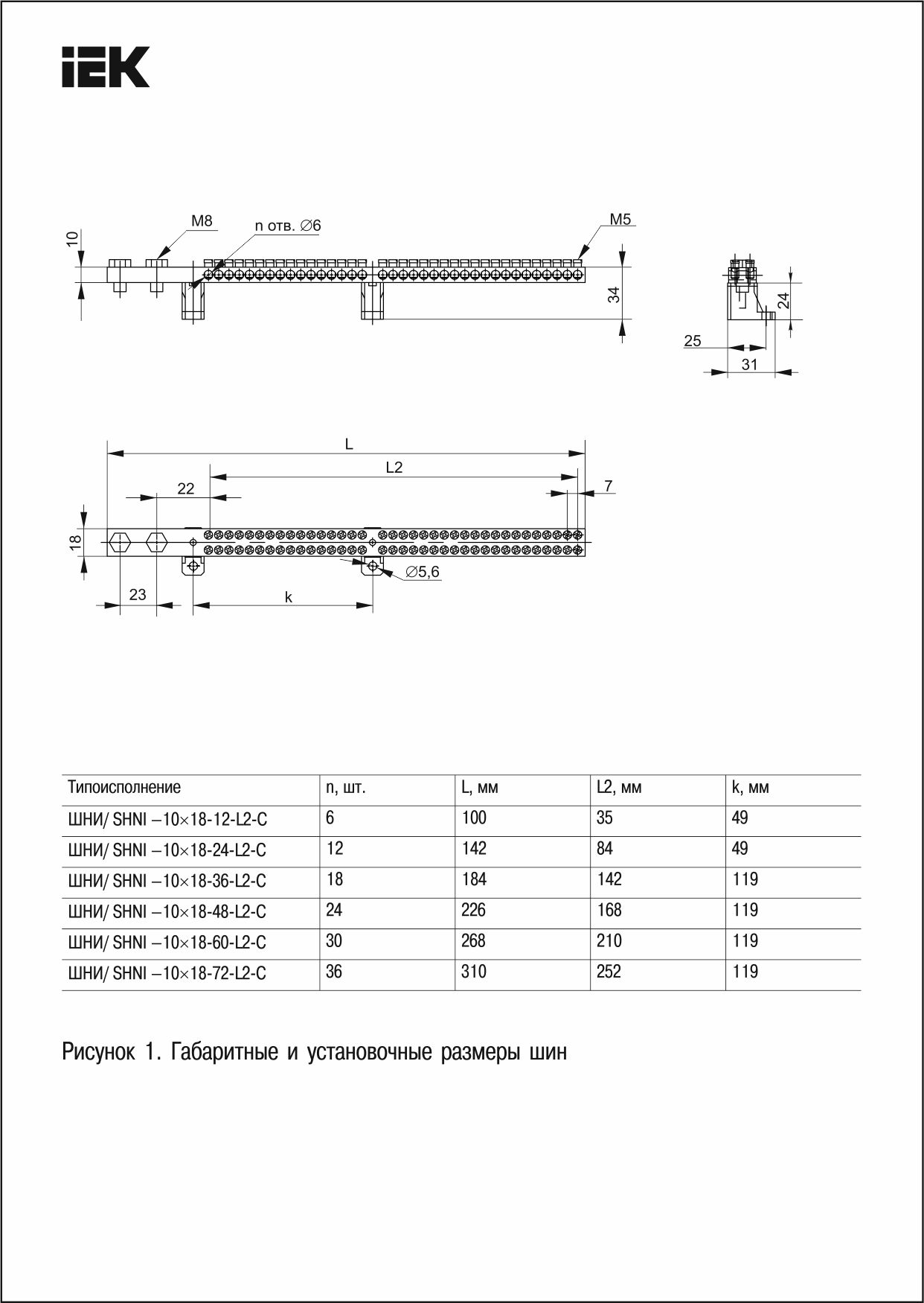 Шина N ноль на двух угл. изол. 200А ШНИ-10х18-60-L2-С IEK | код YNN30-60-C2-K03 | IEK