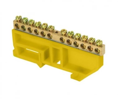 Шина “N” нулевая с изолятором на DIN-рейку 6*9 мм стойка бол 12групп желтый (ANDELI) | код ADL16-298 | ANDELI