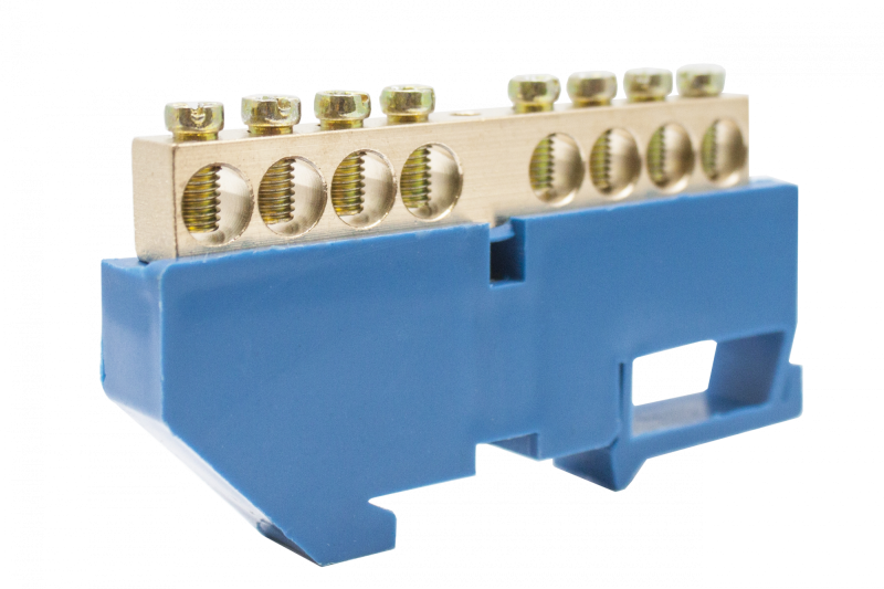 Шинки нулевые латунные на дин-опоре ШНИ 8х12мм 8 отв. цвет синий | код DBN-28-08N | Engard