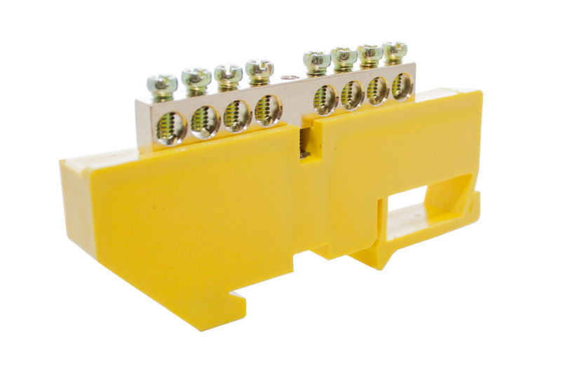Шинки нулевые латунные на дин-опоре ШНИ 6х9мм 8 отв. цвет желтый | код DBN-26-08PE | Engard