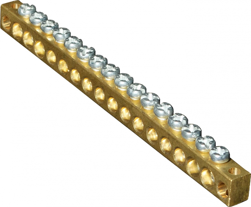 Шина нулевая KSN-1-4-6x9-12 сечение 6х9, 12 отв., крепеж по центру | код A8300-06-01-035 | РЕЛЕ И АВТОМАТИКА