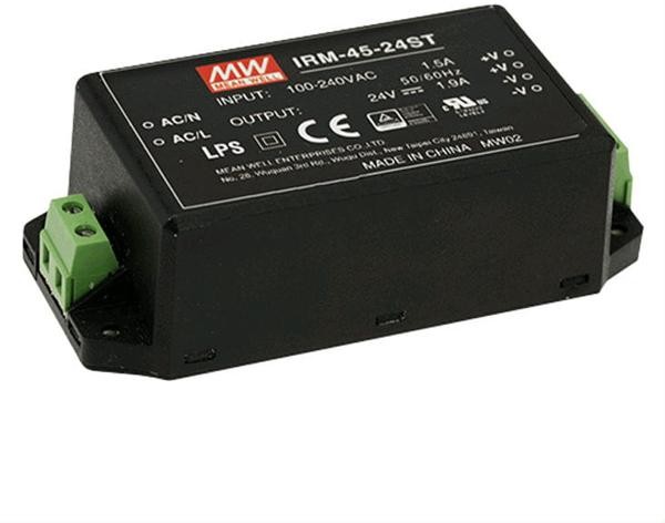 Источник питания AC-DC, 45.6 Вт, вход 85...264В AC 47...440 Гц, выход 12В/3.8А, изоляция 3000В AC, на площадке под винт, 109x52.5x33.5мм, -30...+70C | код IRM-45-12ST | MeanWell