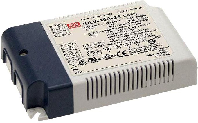 Источник питания AC-DC, 45.1Вт, вход 90…295В AC, 47…63Гц/125…417В DC, ККМ, выход 48В/0.94А, изоляция 3750В AC, в кожухе 120х75х25мм, -20…+80С (корпус), димминг 0...10 В/ШИМ, доп. выход 12В/50мА | код IDLV-45A-48 | MeanWell