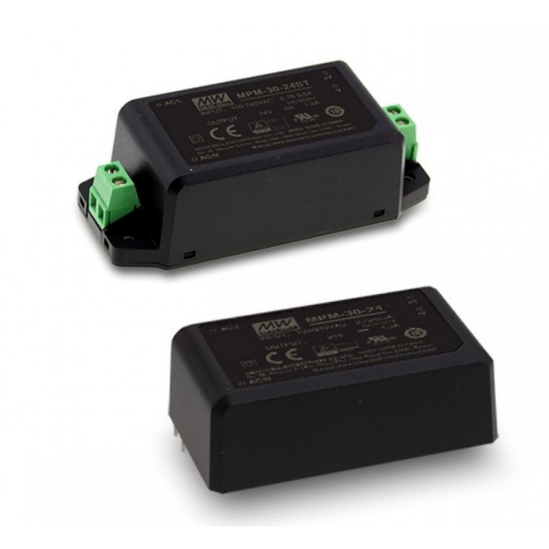Источник питания AC-DC, 30Вт, вход 80...264В AC 47...440 Гц, выход 12В/2.9А, изоляция 4000В AC, в кожухе 69.5х39х24мм, -40...+85C | код MPM-30-12 | MeanWell