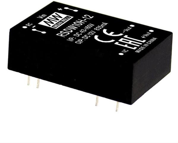 Источник питания DC-DC, 10Вт, вход 43…160В, выход 12В/835мА, изоляция 3000В DC, DIP24 31.8х20.3х12.7мм, -40...+85С | код RSDW10H-12 | MeanWell