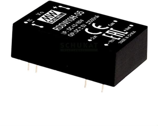 Источник питания DC-DC, 10Вт, вход 43…160В, выход ±5В/±1000мА, изоляция 3000В DC, DIP24 31.8х20.3х12.7мм, -40...+85С | код RDDW10H-05 | MeanWell