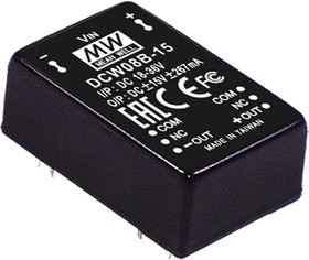 Источник питания DC-DC, 8Вт, вход 9...18В, выходы ±15В/±0.267А, изоляция 1000В DC, DIP24 32х20.3х12,2мм, -25...+71С | код DCW08A-15 | MeanWell