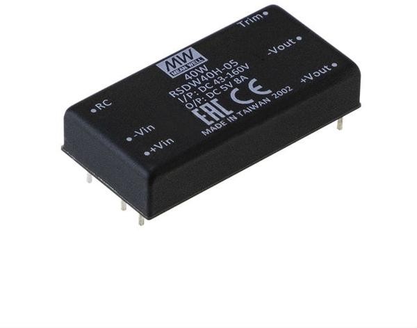 Источник питания DC-DC, 40Вт, вход 110В (40…160В) DC, потребление без/под нагр. 10мА/500мА, выход 12В/3333мА, КПД 89%, ёмкостная нагр. макс. 3900мкф, изоляция 3000В DC, в корпусе 50,8х25,4х10,5мм, -40…+90С | код RSDW40H-12 | MeanWell
