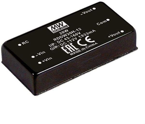 Источник питания DC-DC, 20Вт, вход 18…75В, выход ±12В/±0.835А, изоляция 1500В DC, DIP 50.8х25.4х10.2мм, -40...+85С | код RDDW20G-12 | MeanWell