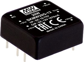 Источник питания DC-DC, 20Вт, Uвх=9…36B, Uвых=12В/1.67А, рег. вых=±10%Uном, вход дист. управл., изоляция 1500В DC, в корпусе 25.4х25.4х10.2мм, -40С…+85С | код SKMW20F-12 | MeanWell