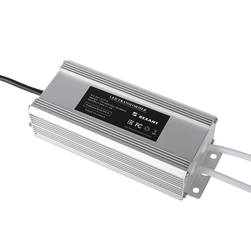 Источник питания тонкий 220 V AC/24 V DC 3 А 72 W с проводами, влагозащищенный (IP67) | код 201-072-2 | REXANT