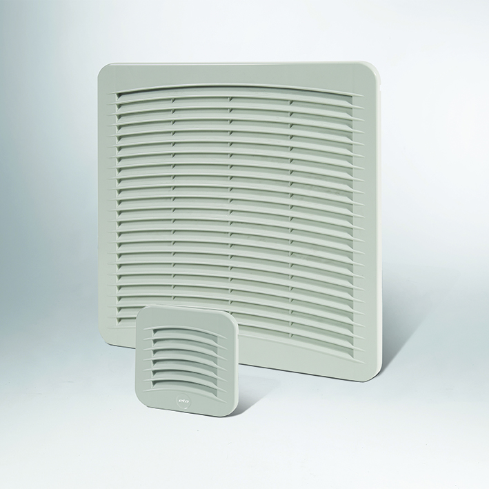 Вентилятор с фильтром 6,1Вт, 32(50)м3/час, 24VDC, габариты 119x119x57,5мм, вырез 92x92мм, выбор направления потока, клеммная колодка, IP54, RAL7035 | код WTSV1000211 | ETA