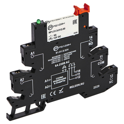 RM1.51.0.012.00 Интерфейсный модуль реле 1 перекидной контакт 6А (~/= 12В AC/DC) винтовые зажимы | код RM151001200 | РЕЛЕОН