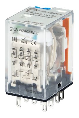 RP4.34.9.110.05 Промежуточное реле 4 перекидных контакта 6А (= 110В DC) блокируемая кнопка проверки + светодиод | код RP434911005 | РЕЛЕОН