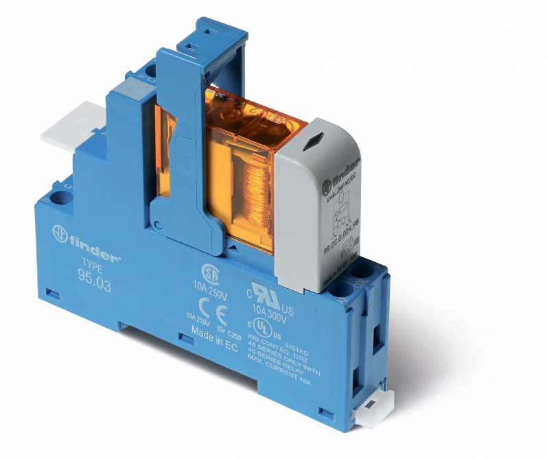 Интерфейсный модуль (сборка 40.31.8.110.0000 + 99.02.0.230.98 + 95.03SPA), электромеханическое реле, 1CO 10A, контакты AgNi, питание 110В AC, категория защиты IP20, винтовые клеммы, пластиковая клипса, LED + варистор, упаковка 1шт. | код 48318110006