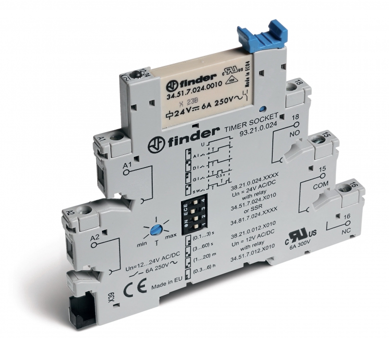 Интерфейсный модуль (сборка 34.81.7.024.8240 + 93.21.0.024), твердотельное реле с таймером (мультифункциональные: AI,DI,GI,SW), выход 2A (240В АС), питание 24В АС/DC, категория защиты IP20, винтовые клеммы | код 382100248240 | FINDER