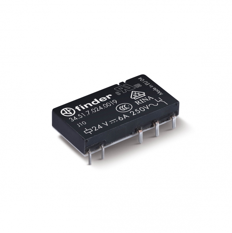 Ультратонкое электромеханическое реле, монтаж на печатную плату, 1CO 6A, контакты AgSnO2, катушка 12В DC (чувствит.), плоский корпус, степень защиты RTI, | код 345170124019 | FINDER