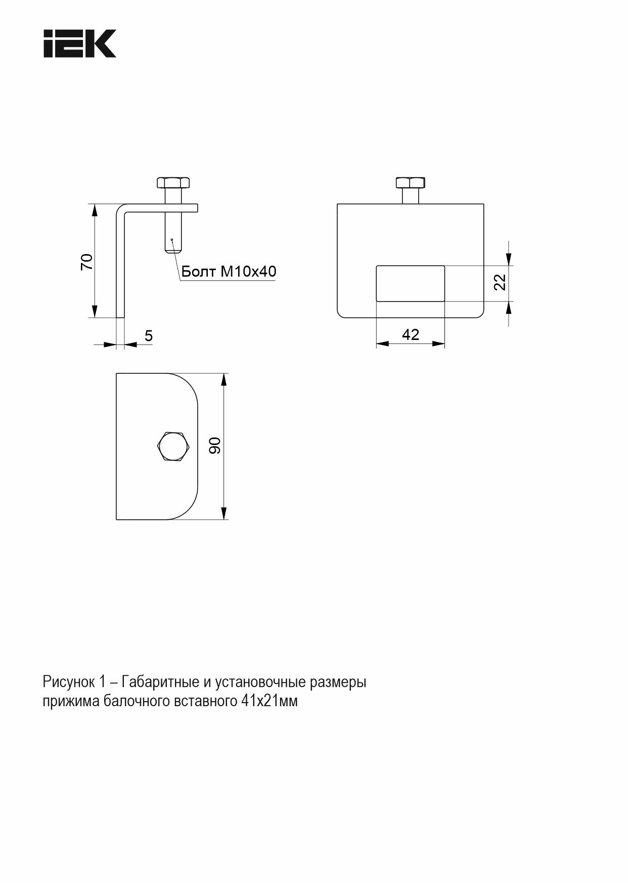 Прижим балочный вставной 41х21мм EZ IEK | код CPB10-VT-41-21-EZ | IEK