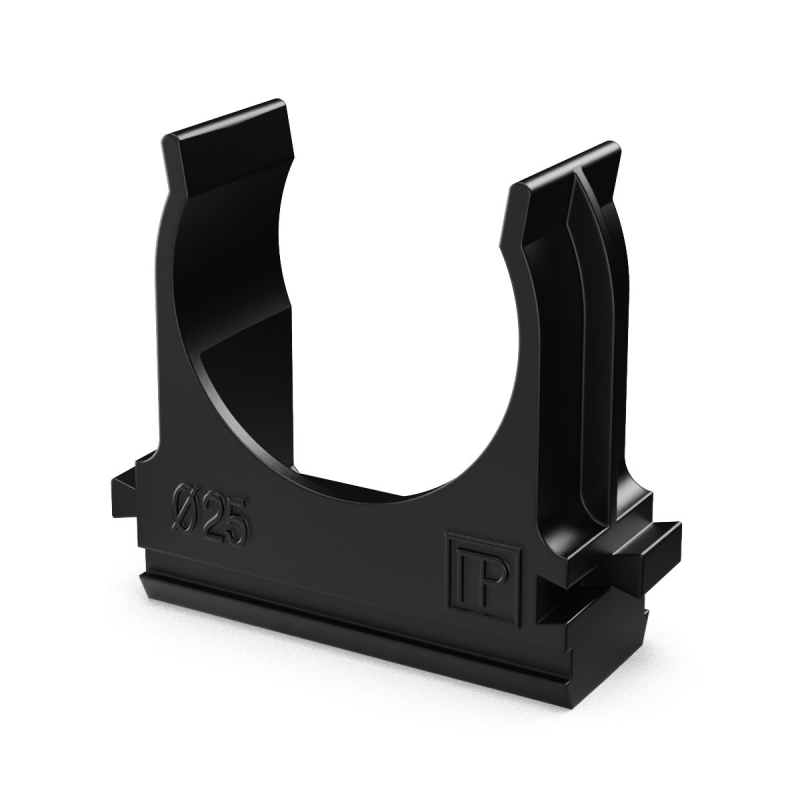 Крепёж-клипса для труб Полистирол черная d25 мм в малой упаковке (10шт/500шт уп/кор) Промрукав | код PR13.0211 | ПРОМРУКАВ