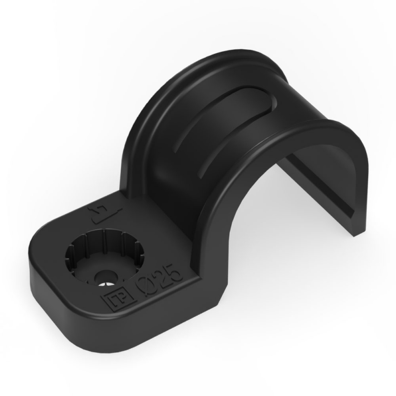 Крепеж-скоба пластиковая односторонняя для прямого монтажа атмосферостойкая черная в п/э d25 мм (50шт/450шт уп/кор) Промрукав | код PR13.0374 | ПРОМРУКАВ