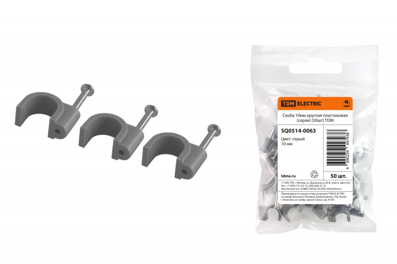 Скоба 10мм круглая пластиковая (серая) (50шт) TDM | код SQ0514-0063 | TDM