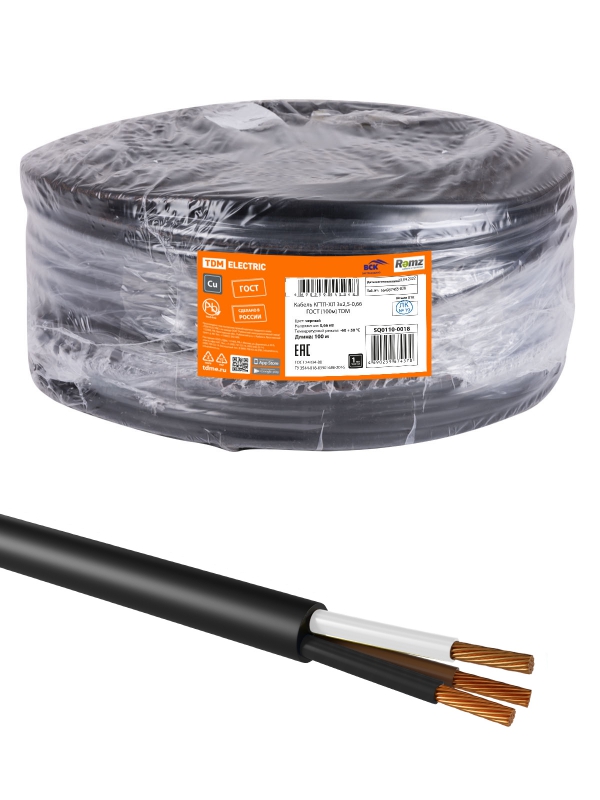 Кабель КГТП-ХЛ 3х2.5-0.66 ГОСТ (бухта 100м) | код SQ0110-0018 | РЭМЗ ТМ