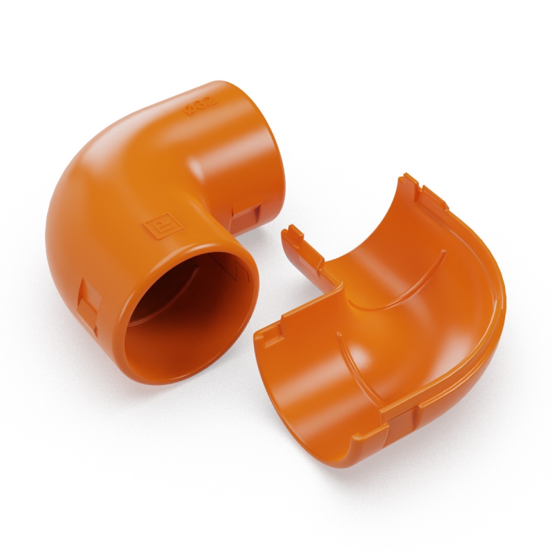 Соединитель угловой разборный оранжевый d32 мм (5шт/400шт уп/кор) Промрукав | код PR13.02483 | ПРОМРУКАВ