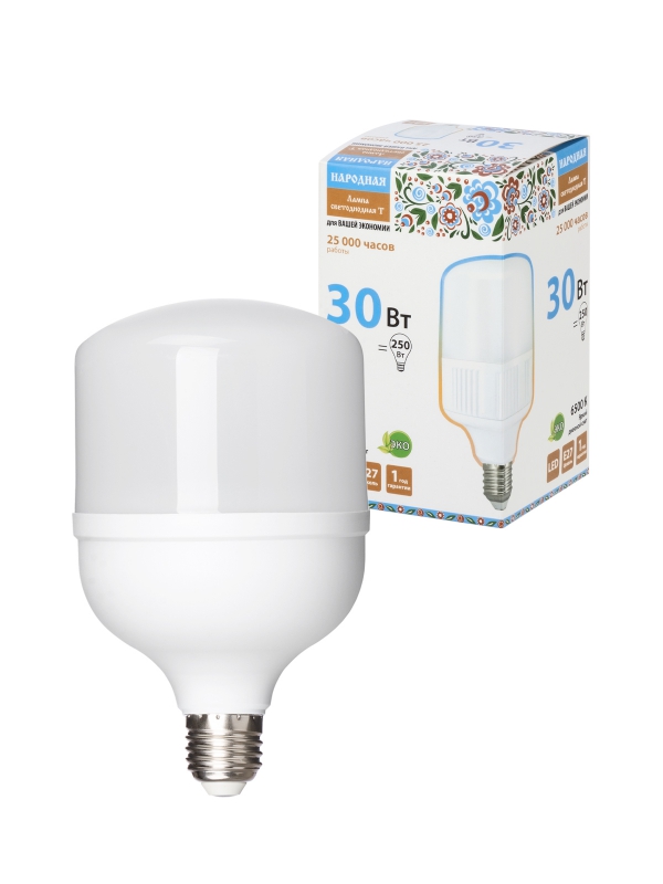 Лампа светодиодная T-30 Вт-230 В-6500 К–E27 (99x168 мм) НАРОДНАЯ | код SQ0340-1643 | TDM НАРОДНЫЙ