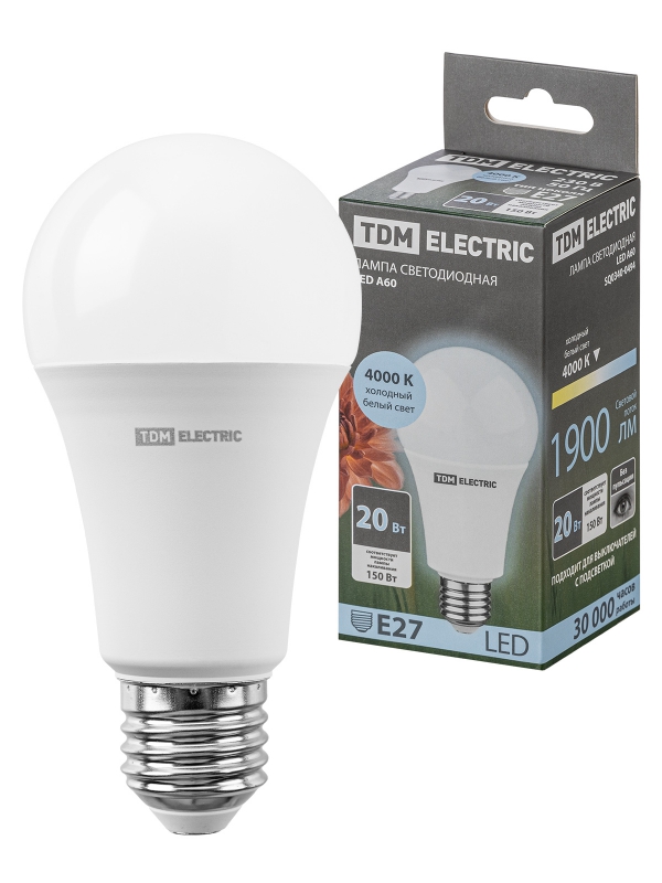 Лампа светодиодная А60 20 Вт, 230 В, 4000 К, E27 TDM | код SQ0340-0494 | TDM