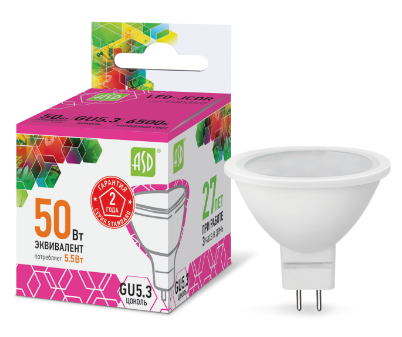 Лампа светодиодная LED-JCDR-standard 5.5Вт 230В GU5.3 6500К 495Лм ASD | код 4690612012261 | ASD