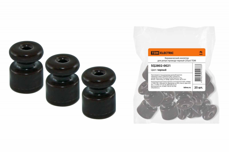 Керамический изолятор для ретро провода черный (25шт) TDM | код SQ2802-0021 | TDM