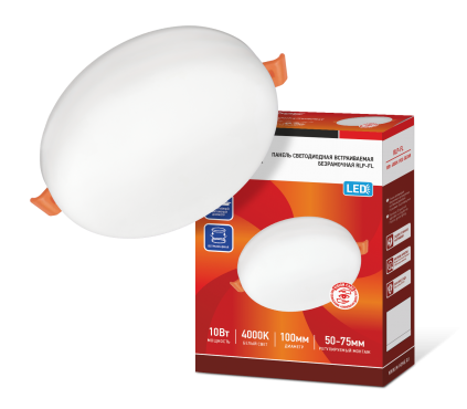 Панель светодиодная встраиваемая безрамочная RLP-FL 10Вт 230В 4000К 700Лм 100мм с рег. монтаж. 50-75мм белая IP20 IN HOME | код 4690612036687 | IN HOME