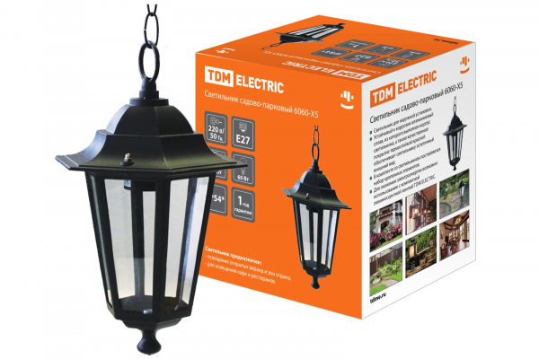Светильник 6060-05 садово-парковый шестигранник, 60Вт, подвес, черный TDM | код SQ0330-0005 | TDM